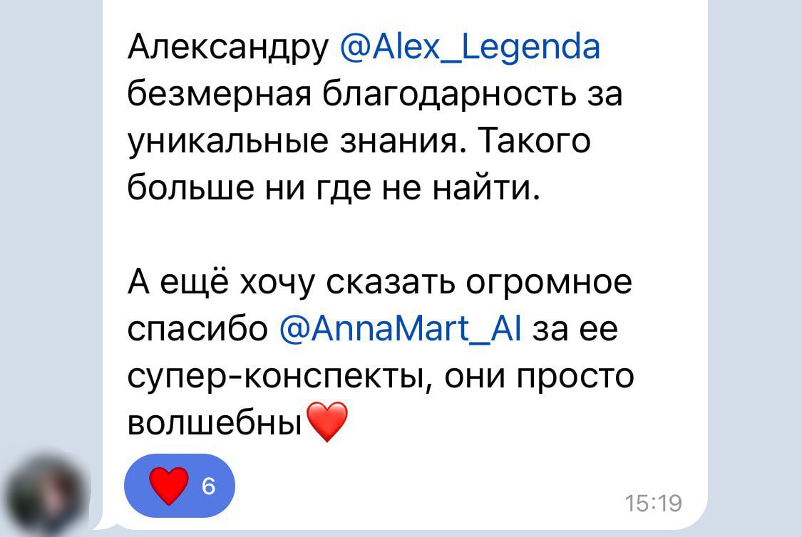 Александру безмерная благодарность за уникальные знания. Такого больше ни где не найти.