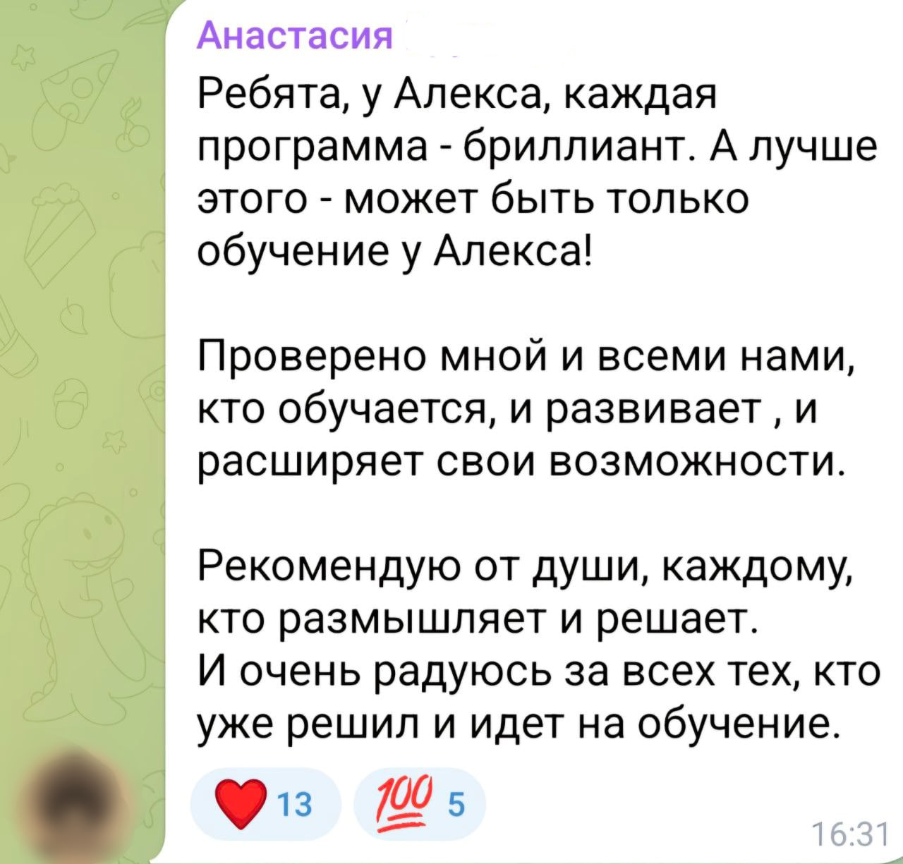 Много обучалась в области эзотерики, как самостоятельно так и с наставниками. Но курс Алекса очень отличается. Он уникален!
